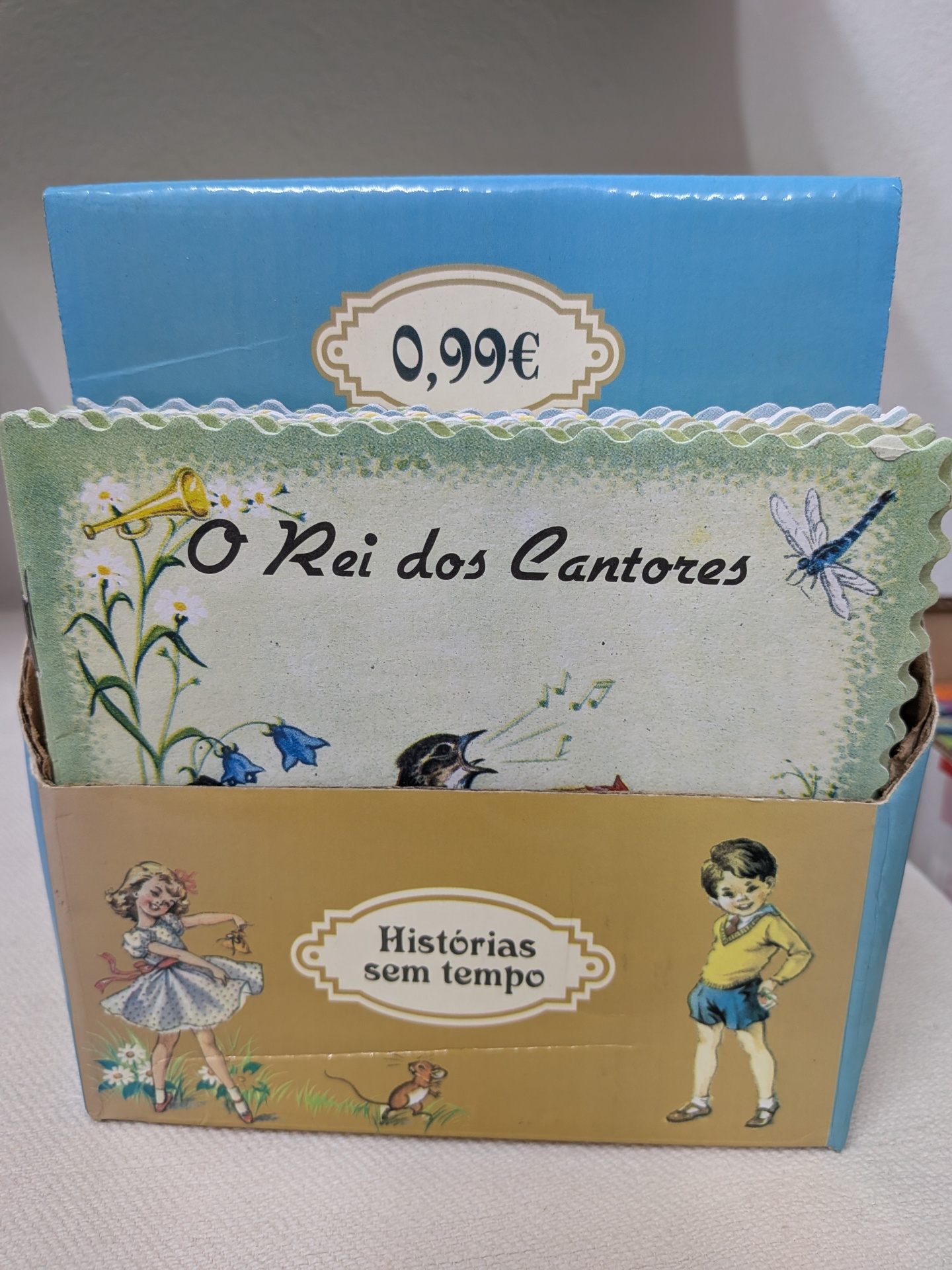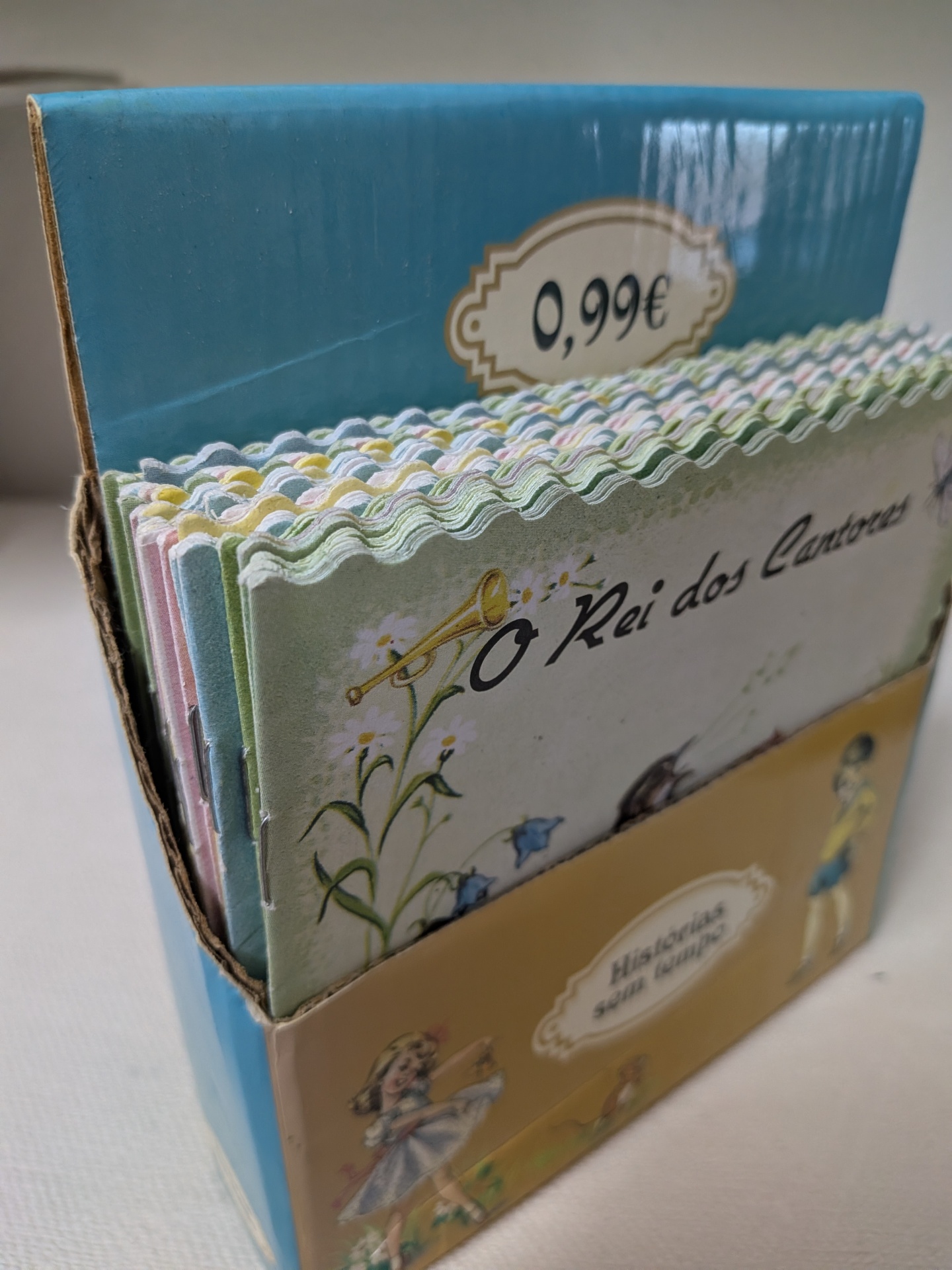 Nesta caixa estão 32 livrinhos, alguns títulos repetidos.