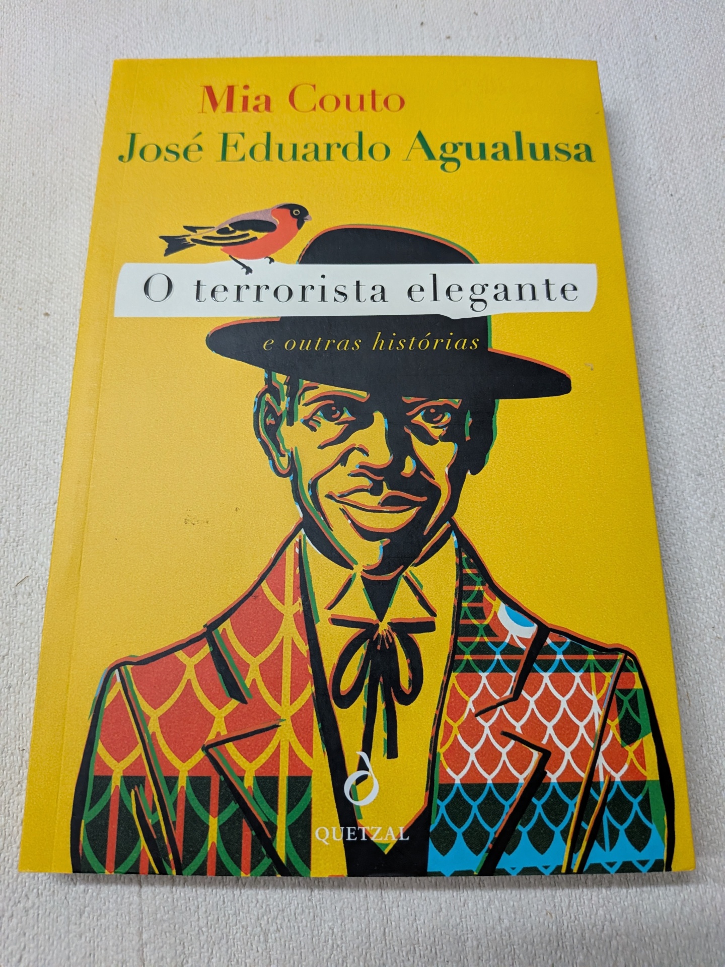 Na história «O terrorista elegante» (escrita a quatro mãos sob um alpendre, em Boane, Moçambique), que dá título ao livro, um angolano é preso em Portugal por suspeita de participação em atos de terrorismo. O homem alega ser capaz de voar e conversa com um passarinho na prisão, que parece dar-lhe as orientações necessárias para que cumpra a sua missão.